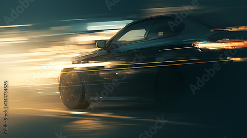 © Anita, Obraz premium A sleek car in motion, captured with dynamic light trails emphasizing speed.