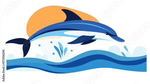 Obraz premium A sleek dolphin leaps in a minimalist design, showcasing clean lines and simple forms in a vibrant flat style.
