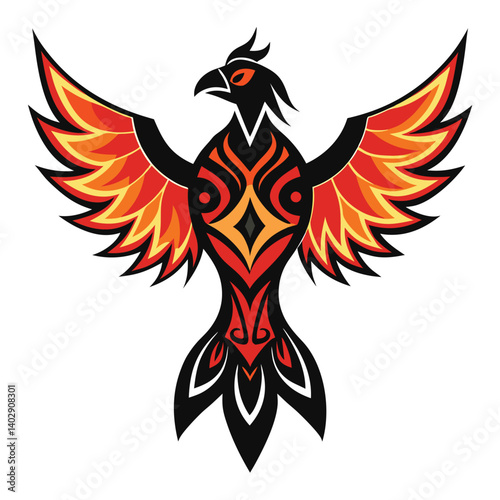 © Graphic, Obraz premium a sleek eagle silhouette with fiery tribal pattern on white background