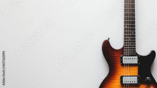 Obraz premium A sleek electric guitar with a modern design, space on the right for text,...