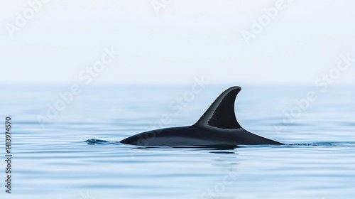 Fototapeta premium A sleek fin emerges from calm waters, hinting at the presence of a marine...