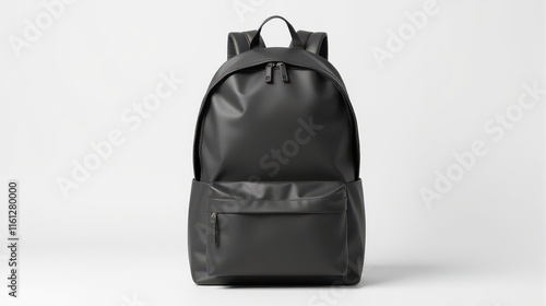 Naklejka premium A sleek gray backpack with minimalist design, featuring a front zipper pocket...