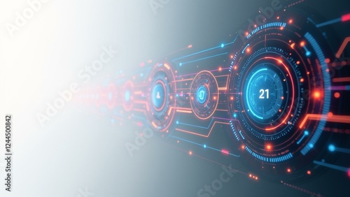 © Max Entropy, Obraz premium A sleek, high-tech interface with vector icons, pastel hues, and minimalist typography against a white or dark grey background.