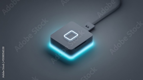 Fototapeta premium A sleek, illuminated technology device with a square touch interface.