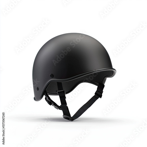 Naklejka premium A sleek, matte black helmet, a symbol of urban riding adventure and stylish protection, shown against a stark white background.