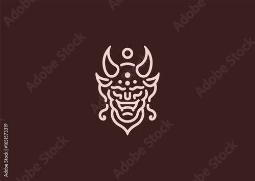 Obraz premium A sleek minimalist oni demon logo in line art style, representing strength,...