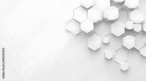 © Wira, Obraz premium A sleek, minimalistic background featuring a row of translucent hexagons in light shades of gray and white, creating a futuristic and clean design.