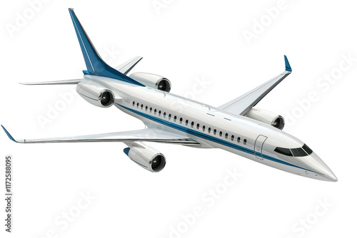 © Prichachai, Fototapeta premium A sleek, modern airplane in a blue and white color scheme, showcasing its aerodynamic design and powerful engines.