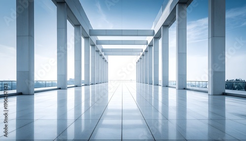 Obraz premium A sleek, modern architectural space featuring a symmetrical walkway with...