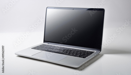 Fototapeta premium A sleek, modern laptop open and isolated on a white background, emphasizing...