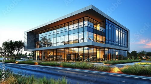 Fototapeta premium A sleek, modern office complex, its scale meticulously crafted on a polished...