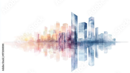 Fototapeta premium A sleek, modern skyscraper reflecting a vibrant cityscape