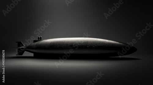 © Aris Suwanmalee, Fototapeta premium A sleek, modern submarine silhouette displayed under dramatic lighting.