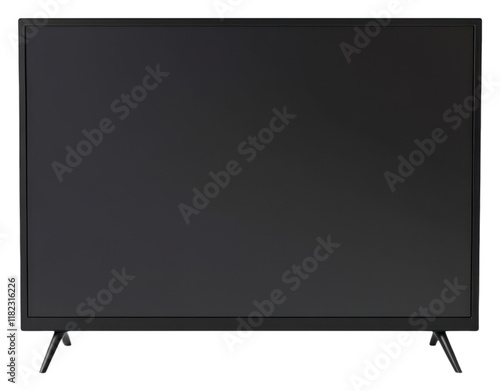 Obraz premium A sleek, modern television with a sturdy stand, featuring a minimalist design and a flat screen, ready for displaying high-definition content.