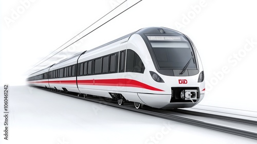 © Oatkhaphon, Naklejka premium A sleek, modern train design on tracks, emphasizing speed and efficiency in transportation.