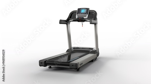 Naklejka premium A sleek, modern treadmill with visible control panel on a clean white...