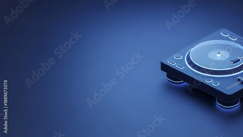 Fototapeta premium A sleek, modern turntable with a glowing base sits on a vibrant blue...