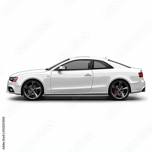 © BersyukurStock, Obraz premium A sleek, modern white coupe car shown from the side, highlighting its design and features. isolated on white background