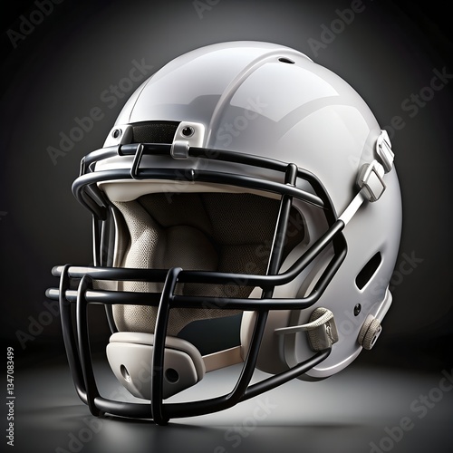 Naklejka premium A sleek, modern white football helmet featuring a black faceguard, designed...