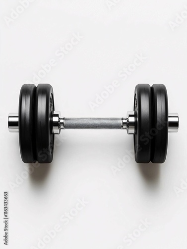 © ckybe, Naklejka premium A sleek pair of adjustable dumbbells with ergonomic grips is showcased against a clean white background, emphasizing their modern style.