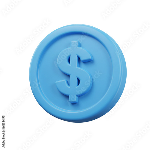 © Toro Palembang, Obraz premium A sleek rendered blue dollar coin signifies modern financial transactions and prosperity.
