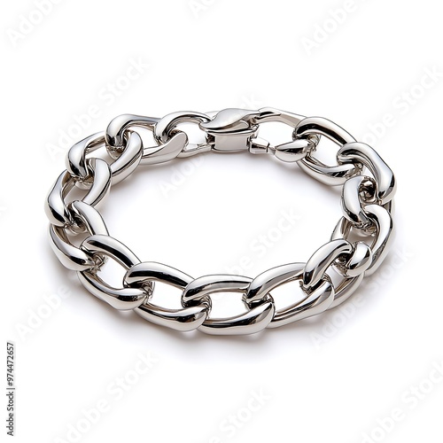 © Raitalinn, Obraz premium A sleek silver curb chain bracelet makes a bold fashion statement, combining elegance with modern style.