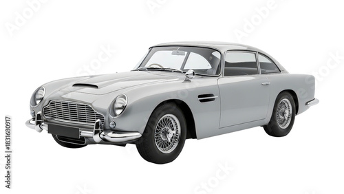 Obraz premium A sleek silver vintage luxury sports car is presented, cut out, stock png,...