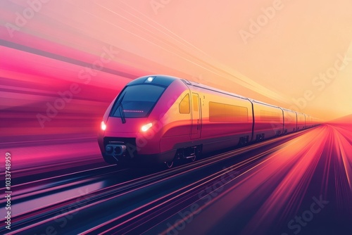 Naklejka premium A sleek train travels effortlessly along the tracks, illuminated by the warm...