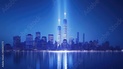 Fototapeta premium A sleek, vector-style illustration of the New York skyline at dusk, featuring...