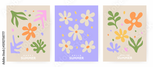 Fototapeta premium A sleek vector summer collection featuring abstract flowers, leaves, and...