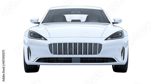 © Ndoomyim, Fototapeta premium A sleek, white car is presented against a plain white backdrop.