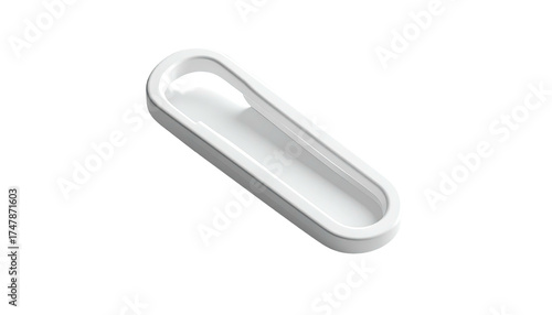 © karung, Obraz premium A sleek, white, rectangular object with a curved opening, isolated on black