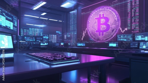 Obraz premium A sleek workspace with real-time cryptocurrency data projections