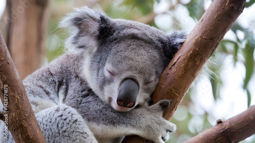 Obraz premium A sleeping koala on tree branch