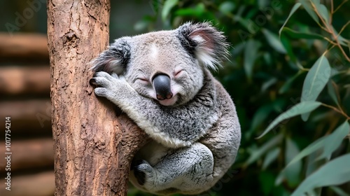 Fototapeta premium A Sleepy Koala Hanging on a Tree Branch with a Calm and Peaceful Expression