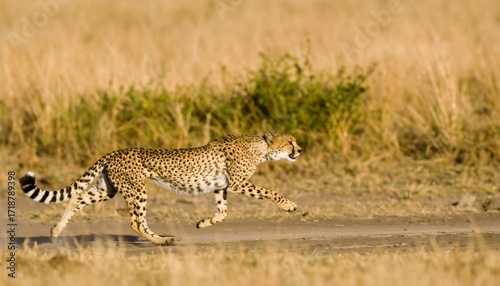 Obraz premium a slender leopard is running, its sharp gaze fixed on the viewer