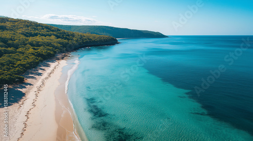 © Asih, Obraz premium A Slice of Tropical Bliss: White Sandbar Surrounded by Pristine Waters