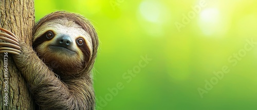 © Wall, Fototapeta premium A sloth hanging from a tree in the jungle