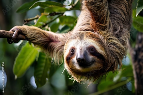 © balausa, Fototapeta premium a sloth hanging upside down from a tree branch