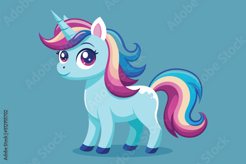 © Iftikhar alam, Naklejka premium A small adorable pony standing on a plain blue background, Cute unicorn Customizable Disproportionate Illustration