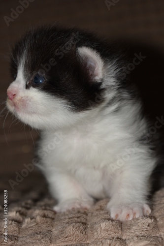 © Igor, Fototapeta premium a small beautiful kitten is lying on the sofa
