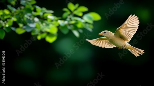 © logitech, Obraz premium A small bird in flight, surrounded by greenery