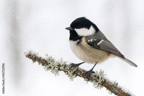 © TheWaterMeloonProjec, Obraz premium A small bird perched on a moss-covered branch