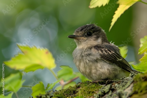 © Nadezhda, Fototapeta premium A small bird sitting on top of a tree branch