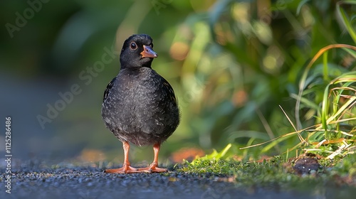 © Albert, Obraz premium A small black bird standing on the side of a road