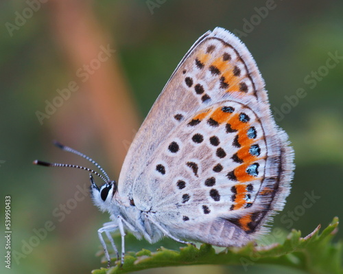Obraz premium A small blue butterfly on a wildflower. Insects in nature.
