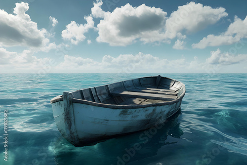 © Le, Naklejka premium a small boat floating in the middle of the ocean