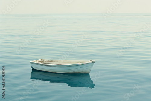 © Le, Naklejka premium a small boat floating in the middle of the ocean