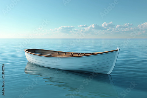 © Sekai, Naklejka premium A Small Boat Gliding Across a Serene Bay with Ripples in the Water