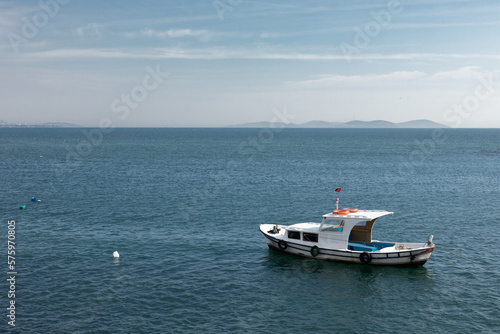 © Sergey Lorgus, Fototapeta premium A small boat is anchored in the sea.